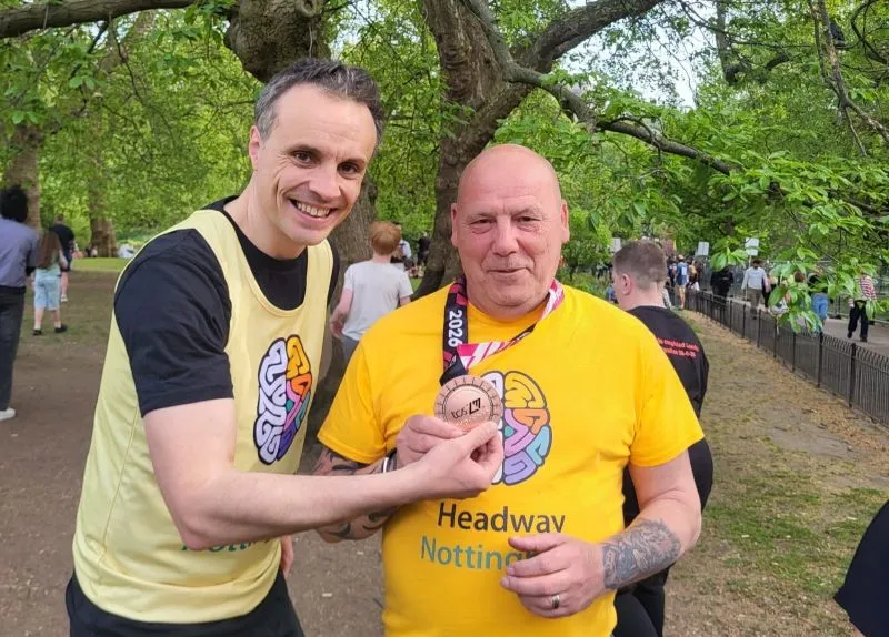 Greg raised funds for the local brain injury charity which supports people across Nottinghamshire living with life‑changing brain injuries. They played an important role in the recovery of Wayne Birkett, one of our clients and a survivor of the 2023 Nottingham attacks.